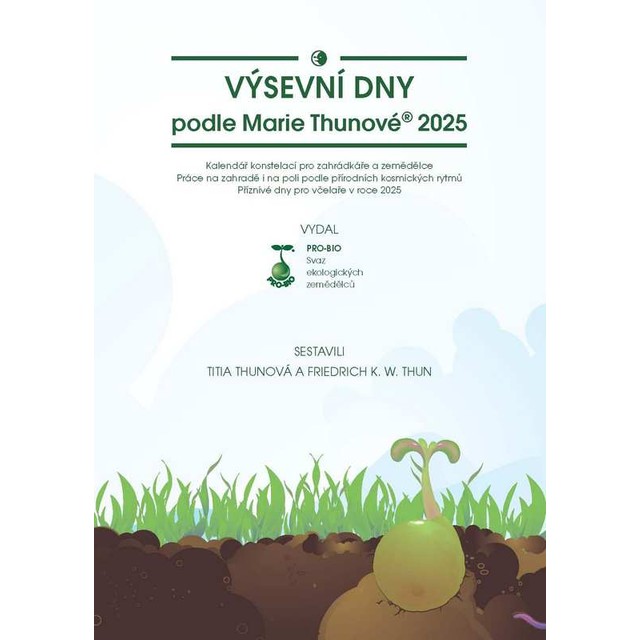 Kalendář je návodem jak nejefektivněji pracovat na zahradě či na poli v návaznosti na kosmické rytmy, uvádí příznivé dny pro včelaře a mnohá další doporučení a rady. Výsevní dny sestavili Titia Thunová a Friedrich K. W. Thun, přeložil Radomil Hradil.