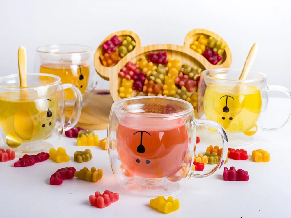 Radost pro děti: Díky průhlednosti skleničky mohou děti sledovat, jak se jejich oblíbený čajový medvídek rozpouští ve vodě, což přidává na zábavě a radosti z pití nápoje.