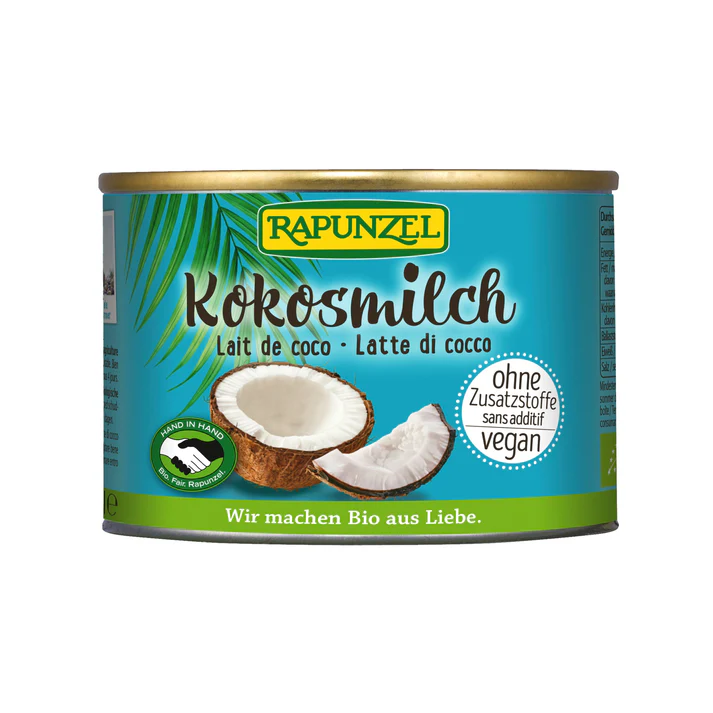 Kokosové mléko značky RAPUNZEL se vyznačuje vysokým obsahem kokosových ořechů a výraznou kokosovou chutí a vůní a krémovou konzistencí. Samozřejmě neobsahuje žádné přídatné látky, jako například stabilizátory. Díky tomu může dojít k tomu, že se obsah plechovky rozdělí na tekutou část a pevnou část. V tom případě stačí obsah po otevření promíchat. Kokosové mléko má mnohostranné použití a hodí se do různých pokrmů. Používá se v asijské kuchyni, do koktejlů, desertů, na zmrzlinové poháry a k ochucení kávových nápojů.. Mléko se vyrábí lisováním kokosových ořechů, vypěstovaných na ekologické plantáži na Sri Lance. Farmáři zde pěstují na jednom místě více druhů plodin, a tím brání vyčerpávání půdy a její erozi. Zároveň s kokosovými ořechy zde tak rostou i banány, ananasy, koření a káva. Díky tomu může mít místy zašedlou barvu. Nejedná se o vadu výrobku a takto zabarvené mléko je možné bez problémů použít.
