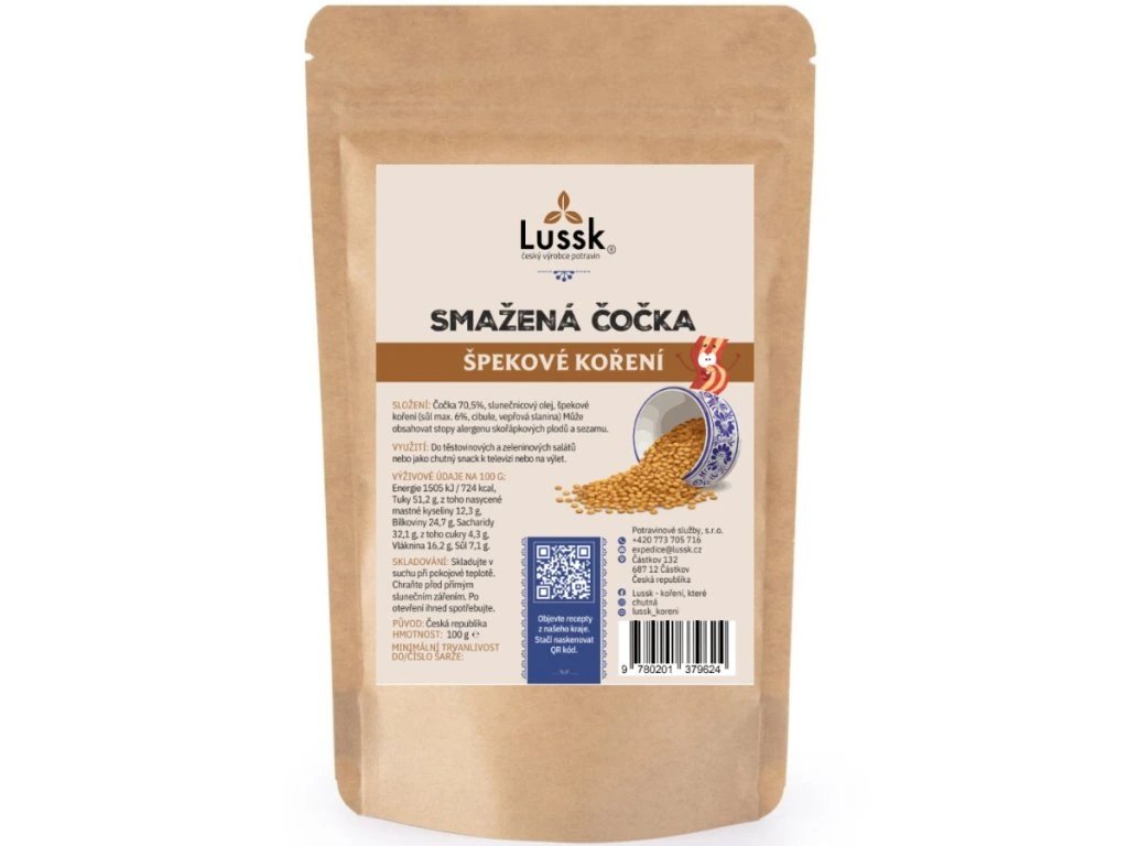 | Obsahuje | Čočka 85 %, česnek, slunečnicový olej, vepřové sádlo, sůl |